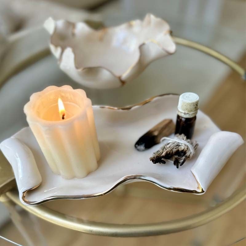 Amorf Altın Dekorlu Seramik Tabak