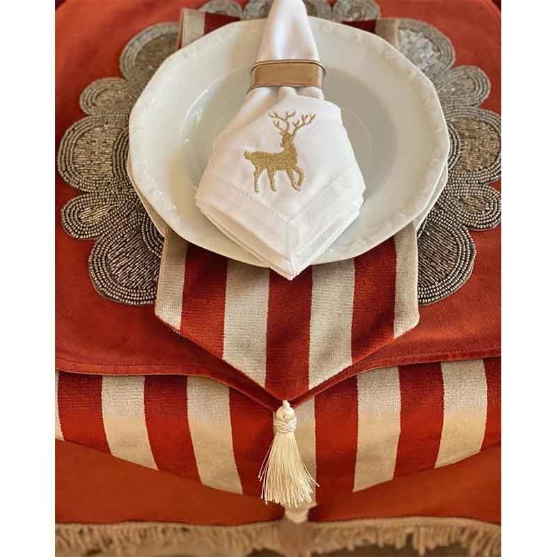 Kiremit Çizgili Velvet Mini Runner/ 2'li Set
