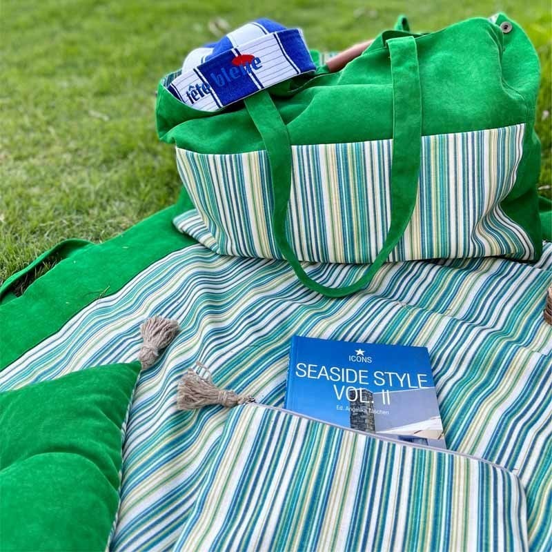 -Koleksiyondaki kare minder , dikdörtgen yastık ve örtü çantaya sığacak şekilde üretilmiştir.