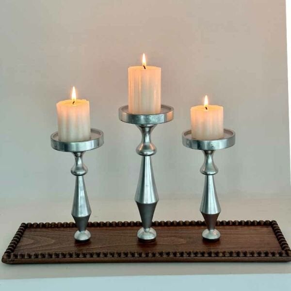 Tepsili 3'lü Ahşap Şamdan