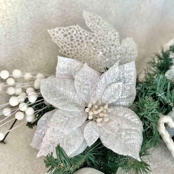 Beyaz Poinsetta Çiçeği/ Klipsli 24cm
