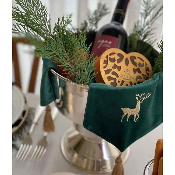 Çift Taraflı Yeşil&Ekose Mini Runner / Geyik 2'li Set