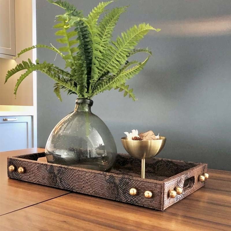 Pirinç Detaylı Yılan Derisi Tepsi / Orta Boy